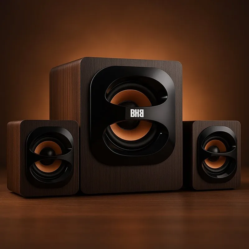 מערכת רמקולים מולטימדיה איכותית למחשב בתצורת 2.1, הכוללת שני רמקולים וסאב‑וופר. הרמקולים עשויים עץ, המספק צליל חם, עמוק ועוצמתי, ומתאימים למוזיקה, סרטים ומשחקים.